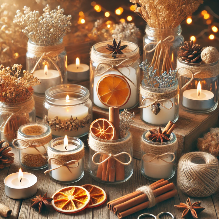 Q4. Wie kann ich mein Kerzen-Arrangement jahreszeitlich gestalten? Passen Sie die Dekoration an die Jahreszeit an. Im Herbst eignen sich bunte Blätter und Zimt, im Winter Tannenzapfen und Lichterketten, im Frühling Blüten und Pastellfarben und im Sommer Sand und Muscheln für ein maritimes Flair.